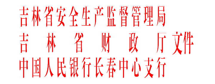 各市(州)、县(市、区)安全监管局,长白山管委会安全监管局,各市(州)、县(市)财政局,长白山管委会财政局,中国人民银行各市(州)中心支行、各县(市)支行,国家开发银行、农业发展银行、工商银行、农业银行、中国银行、建设银行、交通银行、邮政储蓄银行吉林省分行、光大银行、浦发银行、招商银行、民生银行、中信银行、兴业银行、华夏银行长春分行,吉林银行,盛京银行长春分行,吉林省农村信用社联合社,韩亚银行、汇丰银行长春分行,长春农村商业银行,长春发展农村商业银行,九台农村商业银行,吉林双阳农村商业银行,一汽财务公司,吉林森工财务公司,长春南关惠民村镇银行,长春绿园融泰村镇银行,长春高新惠民村镇银行,长春净月榆银村镇银行,长春经开融丰村镇银行,九台龙嘉村镇银行,长春双阳吉银村镇银行,吉林省信托有限责任公司: