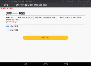 (4)答题时点击备选答案前面的小方块即可选择正确答案,然后点击“确定”进入下一题,答完第20道题目,即可点击“结束答题”提交,系统将自动显示此次答题结果及分数。