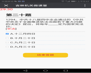 (1)答题时间为30分钟,如您答题时间超过30分钟,不论您是否答题完毕,系统都将自动提交,请参与答题的同志注意答题时间;