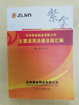 吉林紫金铜业有限公司主要适用法律法规汇编