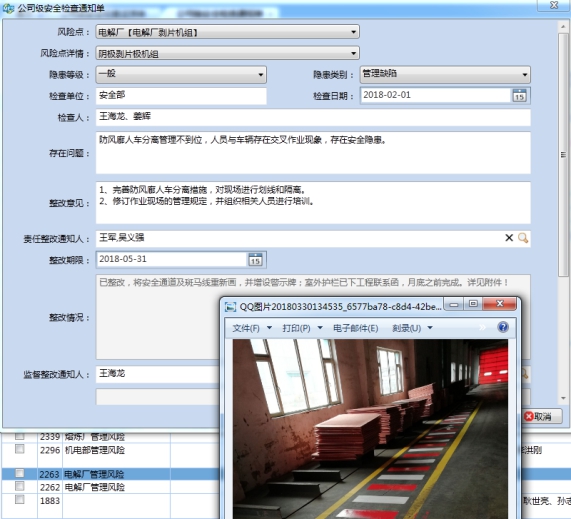风险管控人接到提醒后,在电脑端查看信息,进行编辑下发给本单位相应的整改责任人进行整改,同时设置整改期限,限期整改。整改责任人接到通知后,电脑端会显示具体要求,按照要求进行整改并回复反馈,整改监督人也会收到此整改通知单,监督整改。整改闭合后按月度打印置换治理台账并签字存档。