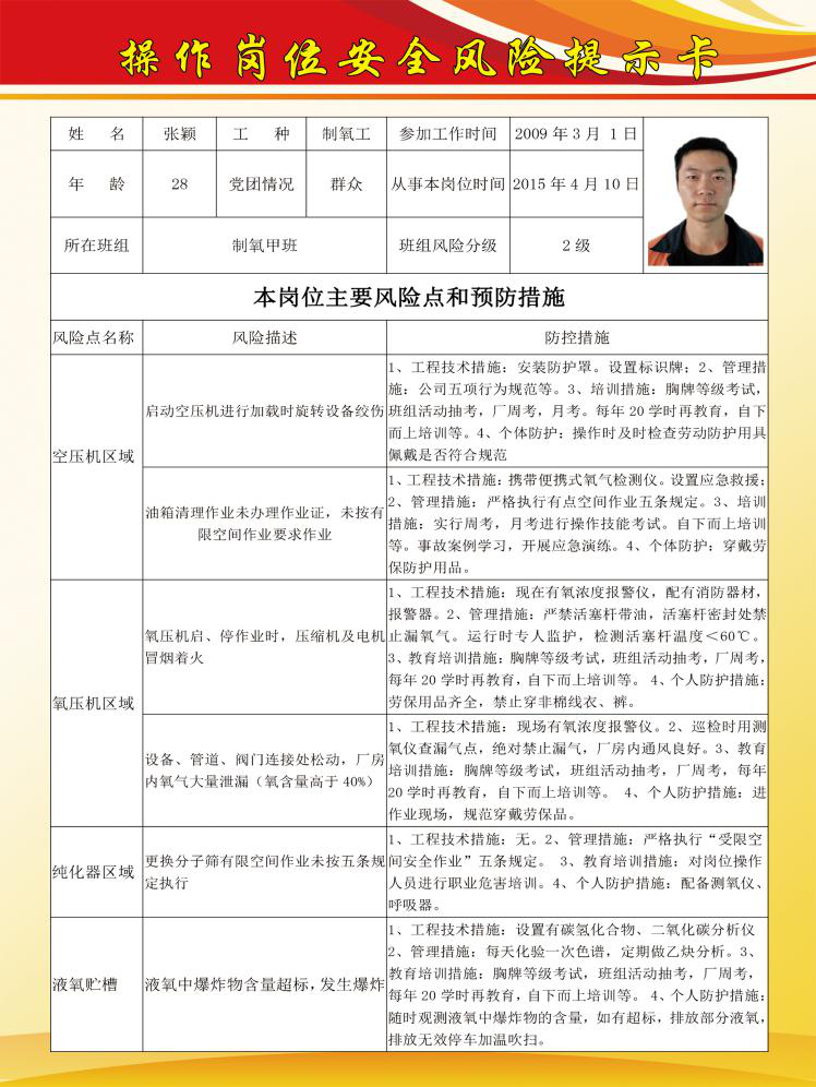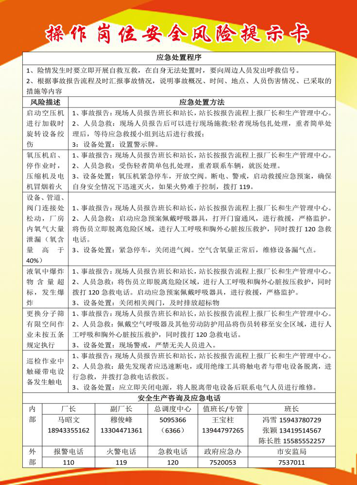 操作岗位风险提示卡