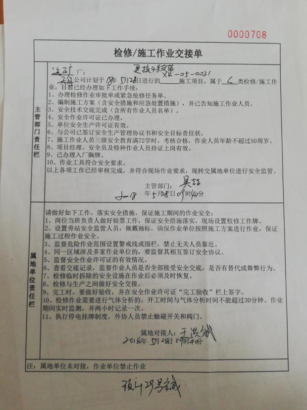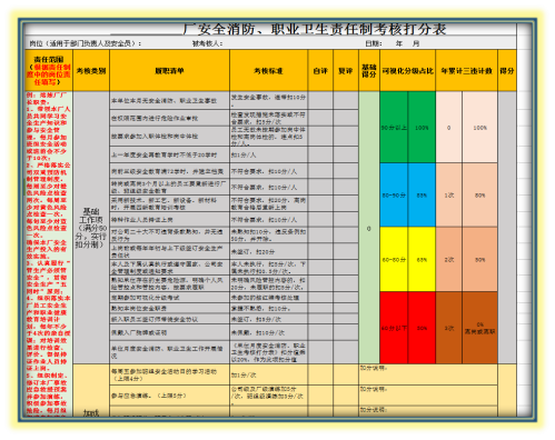 1、明确全员岗位安全生产责任制:公司根据各岗位差异性,制定了具有针对性的全员岗位安全生产责任制,各级部门按“谁主管谁负责”的原则,确保安全生产,落实各岗位安全生产责任。公司考虑到岗位工艺设备具有变动性,定期对全员岗位责任制进行修订,制定责任状并签字,同时制定责任制打分表,每日对员工进行打分,并与安全奖金挂钩。