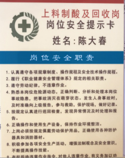 将操作岗位的关键风险环节的防控措施、应急措施制作成卡片,发放到员工个人手中,做到一人一卡,落实每名员工安全操作行为。