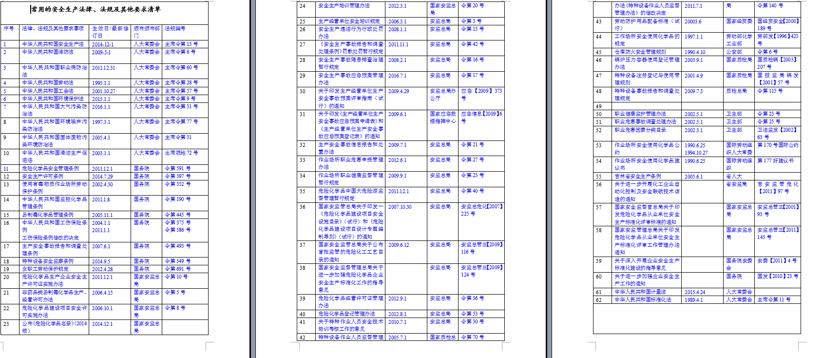 (一)法律法规识别。我公司认真落实相关行业规范,加大法律法规识别和学习力度,将相关法律法规及省各项规定汇总,发放到各厂部(室),保证每个班组一套,定期开展培训学习。