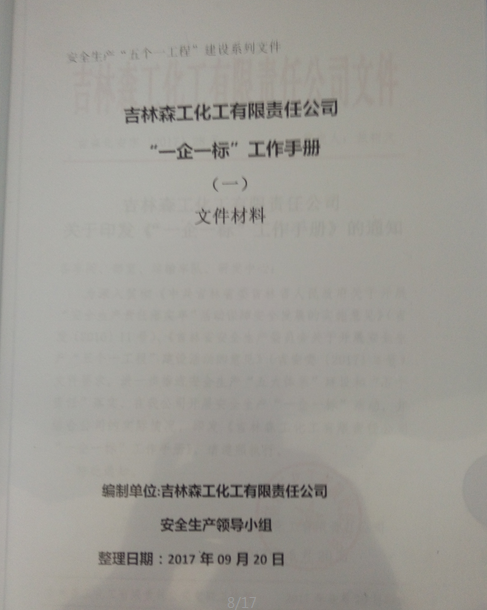为深入贯彻《中共吉林省委吉林省人民政府关于开展“安全生产责任落实年”活动保障安全发展的实施意见》(吉发〔2016〕11号)、《吉林省安全生产委员会关于开展安全生产“五个一工程”建设活动的意见》(吉安委〔2017〕3号)和《梅河口安全生产委员会关于开展安全生产“五个一工程”建设活动的意见》要求,进一步推进安全生产“五大体系”建设和“五个责任”落实,我公司扎实开展安全生产“五个一工程”建设活动,具体建设情况如下: