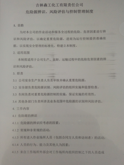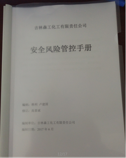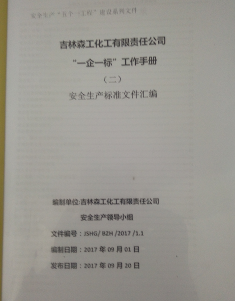 (一)安全生产标准化管理体系。为进一步规范安全生产管理,我公司于2017年初开展了危险化学品安全标准化达标创建工作,并顺利通过安全生产监督管理局和专家组的考评,取得了三级安全标准化证书。