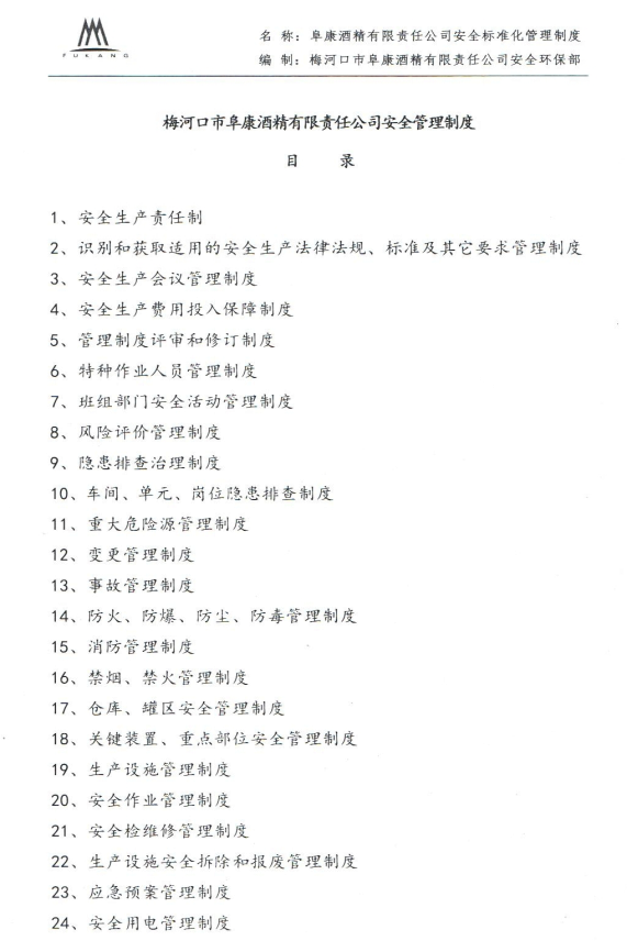 1、安全生产标准化管理体系:为进一步完善安全生产管理体系,我公司于2018年6月通过梅河口市安全生产监督管理局和安全生产标准化专家组的考评,取得了安全标准化三级证书。