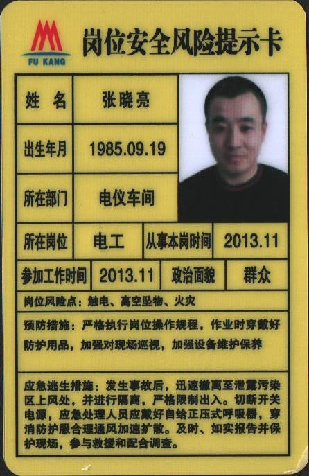 图1:“一人一卡” (岗位安全风险提示卡)