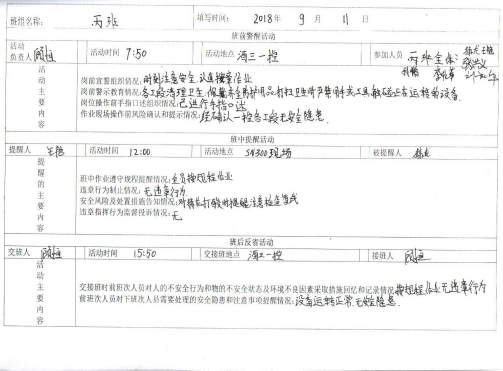 公司建立完善警示教育制度,各车间、班组每个工作日要组织员工开展班前警醒、班中提醒、班后反省的安全教育活动,同行业相关事故案例进行学习、安全宣誓等,工作后进行总结并形成记录,强化风险意识。
