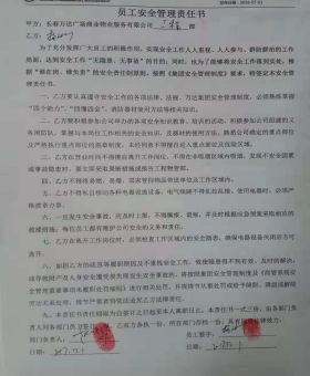 ①明确全员岗位安全生产责任制:公司根据各岗位差异性,制定了具有针对性的全员岗位安全生产责任制,各级部门按“谁主管谁负责”的原则,确保安全生产,落实各岗位安全生产责任,全体员签订安全责任书。